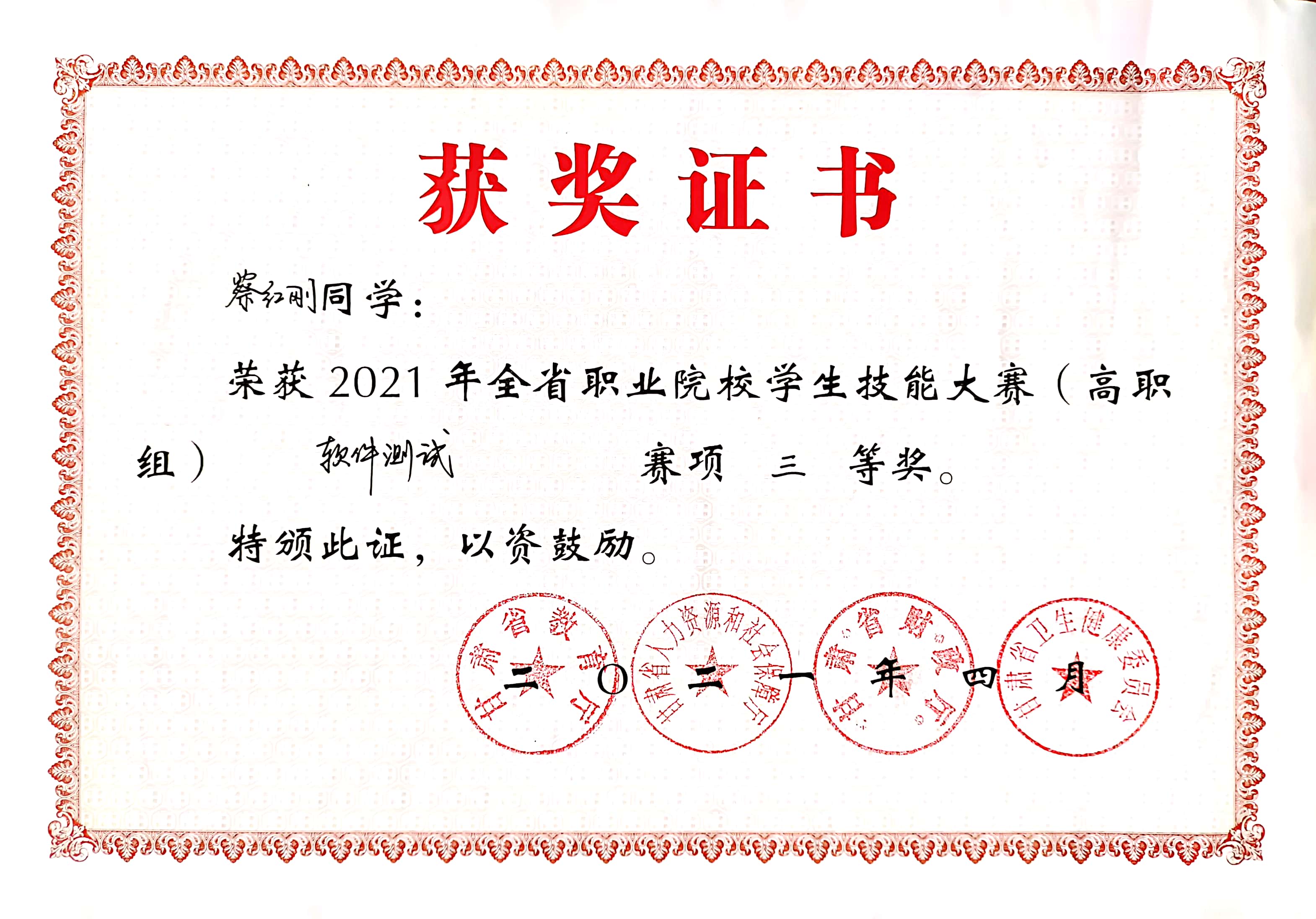 2021年全省職業(yè)院校學(xué)生技能大賽“三等獎”