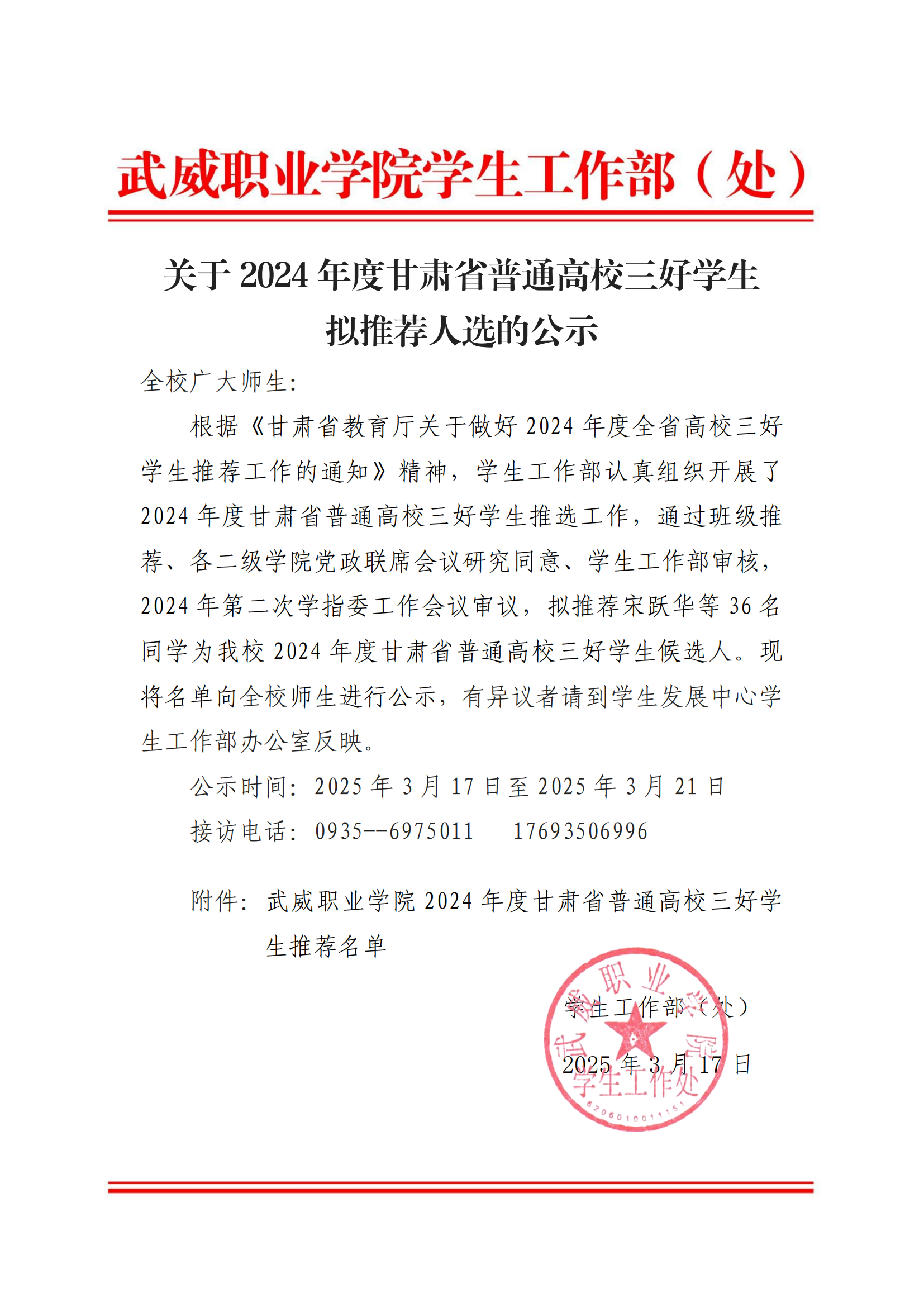 關(guān)于2024年度甘肅省普通高校三好學(xué)生擬推薦人選…