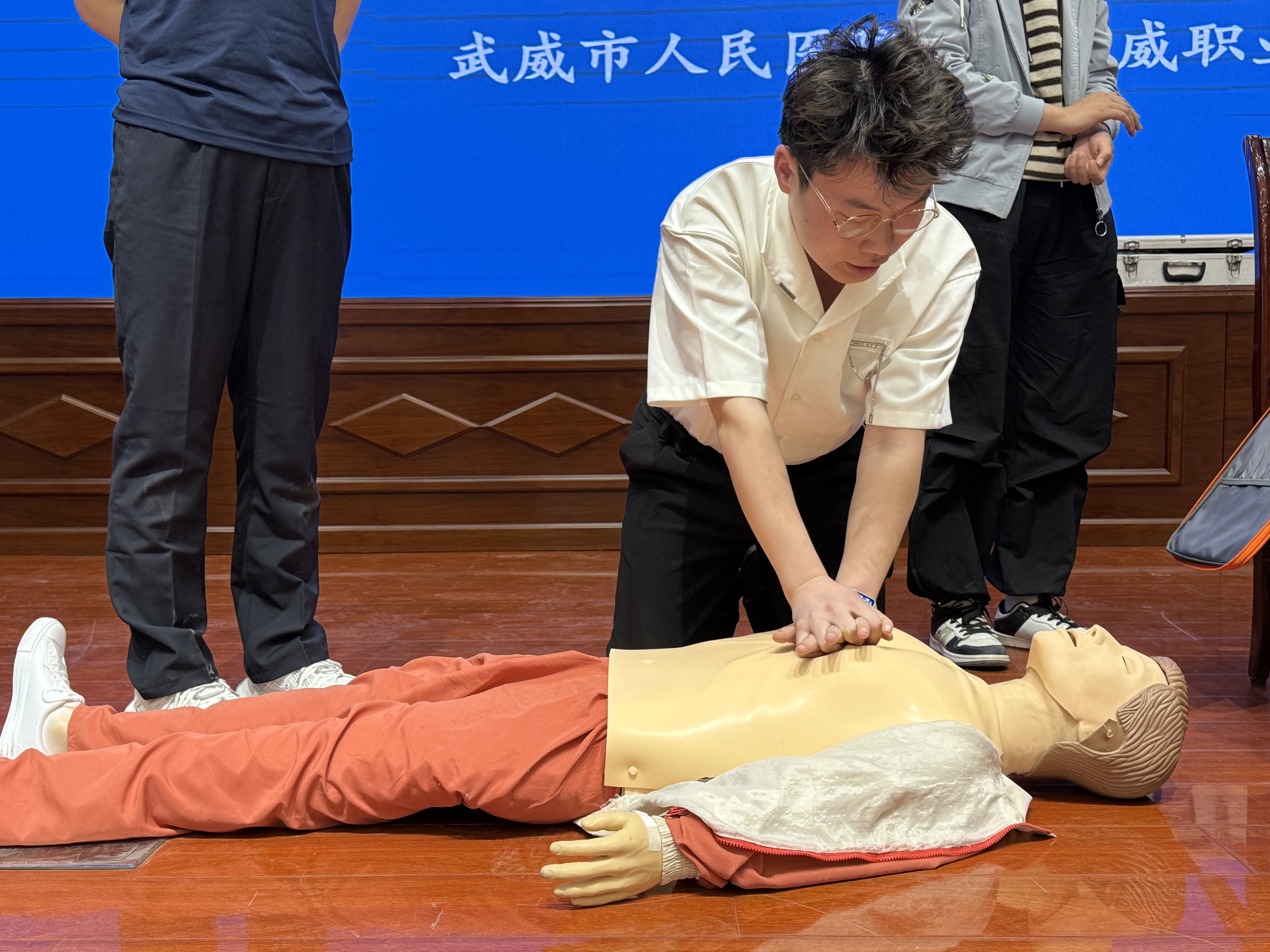 在理論環(huán)節(jié),武威市人民醫(yī)院急診科劉主任圍繞現(xiàn)代救護(hù)理念展開(kāi)講解,重點(diǎn)強(qiáng)調(diào)“黃金4分鐘”在心肺復(fù)蘇中的關(guān)鍵作用,并詳細(xì)解讀心肺復(fù)蘇(CPR)操作流程、AED使用規(guī)范、海姆立克急救法及創(chuàng)傷救護(hù)技術(shù)。結(jié)合真實(shí)案例,劉主任糾正了“掐人中急救”“盲目搬動(dòng)傷者”等常見(jiàn)誤區(qū),通過(guò)視頻演示和互動(dòng)問(wèn)答,幫助同學(xué)們掌握科學(xué)施救要點(diǎn)。“急救是每個(gè)公民的社會(huì)責(zé)任,關(guān)鍵時(shí)刻能挽救生命。”劉主任的講解深入淺出,現(xiàn)場(chǎng)學(xué)生認(rèn)真記錄,積極提問(wèn)。?