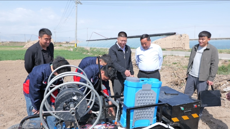 5月13日,由學(xué)校師生團(tuán)隊(duì)研發(fā)的基于物聯(lián)網(wǎng)的電驅(qū)鋪膜鋪管噴藥一體機(jī)在涼州區(qū)大柳鎮(zhèn)橋坡村農(nóng)田中正式開啟測試。本輪測試邀請了武威市農(nóng)業(yè)機(jī)械化技術(shù)推廣中心工程師、甘肅畜牧工程職業(yè)技術(shù)學(xué)院教授、甘肅天誠農(nóng)機(jī)具制造有限公司負(fù)責(zé)人等專家親臨現(xiàn)場指導(dǎo)。