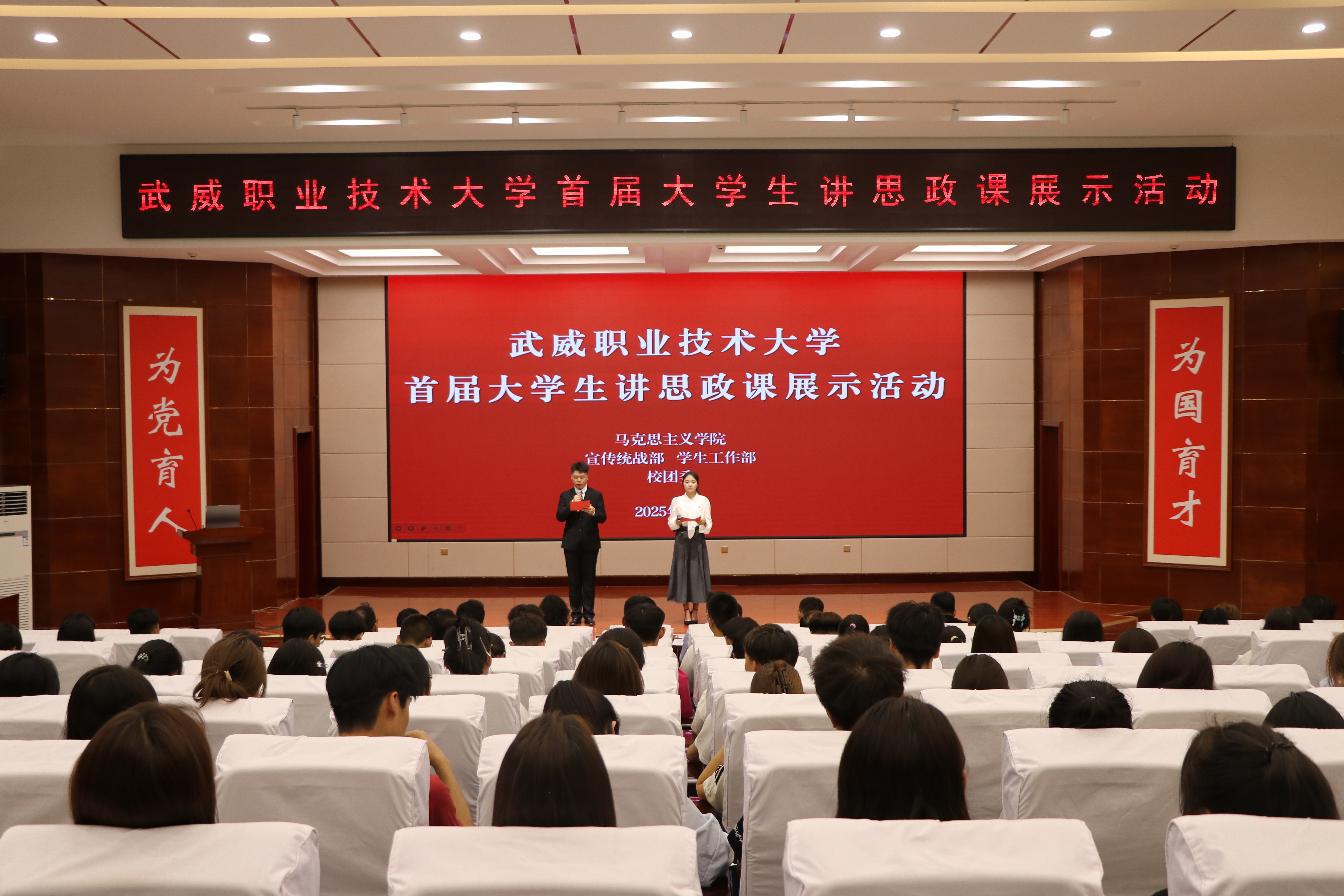 為深入學(xué)習(xí)貫徹習(xí)近平總書(shū)記對(duì)學(xué)校思政課建設(shè)的重要指示精神,推進(jìn)“大思政課”建設(shè),加強(qiáng)對(duì)廣大青年學(xué)子的政治引領(lǐng),提升學(xué)校思政育人實(shí)效,6月25日,武威職業(yè)技術(shù)大學(xué)首屆大學(xué)生講思政課展示活動(dòng)在學(xué)校菁英廳成功舉辦。黨委委員、黨委組織部部長(zhǎng)任陶出席活動(dòng)并講話(huà),各二級(jí)學(xué)院負(fù)責(zé)人及全體思政課教師、學(xué)生代表共200余人參加了活動(dòng)。