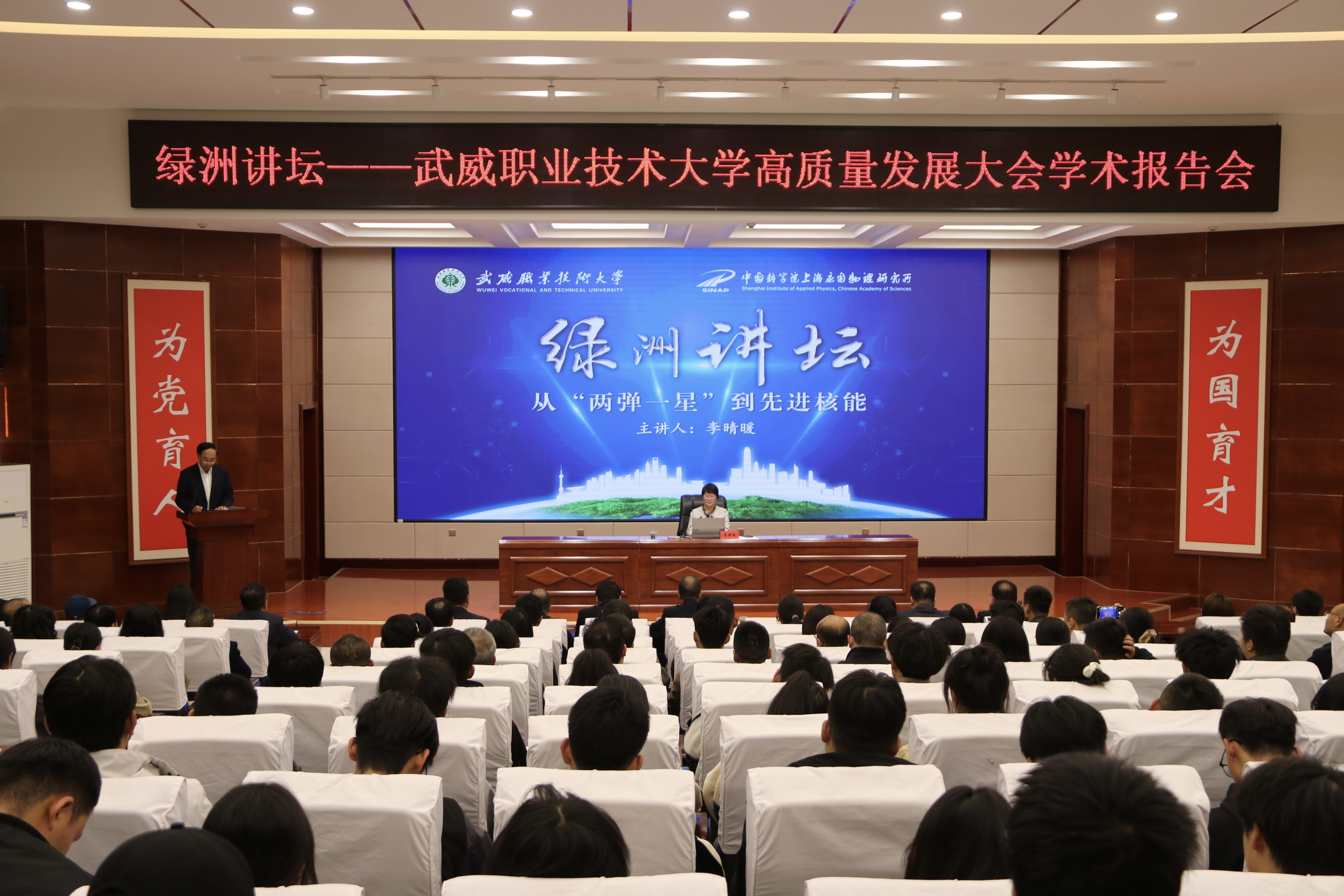 當(dāng)天上午,武威職業(yè)技術(shù)大學(xué)舉行揭牌儀式,標(biāo)志著學(xué)校正式邁入發(fā)展新階段。而學(xué)校的跨越式發(fā)展,離不開上海應(yīng)用物理研究所的長(zhǎng)期支持。自2018年2月,甘肅省教育廳、武威市政府與上海應(yīng)用物理研究所簽訂《聯(lián)合辦學(xué)協(xié)議》,共建“中科低碳新能源技術(shù)學(xué)院”以來,雙方開創(chuàng)了中科院研究所與高職院校合作辦學(xué)先例,成為全國(guó)產(chǎn)教融合、科教融匯典范。在上海應(yīng)用物理研究所助力下,武威職業(yè)技術(shù)大學(xué)打造的 “綠洲講壇” 系列活動(dòng),圍繞政治、經(jīng)濟(jì)、文化、社會(huì)熱點(diǎn)等領(lǐng)域開展學(xué)術(shù)講座,不僅拓展了師生視野,更營(yíng)造了優(yōu)良學(xué)術(shù)氛圍,成功獲評(píng)甘肅省職業(yè)院校特色文化品牌。