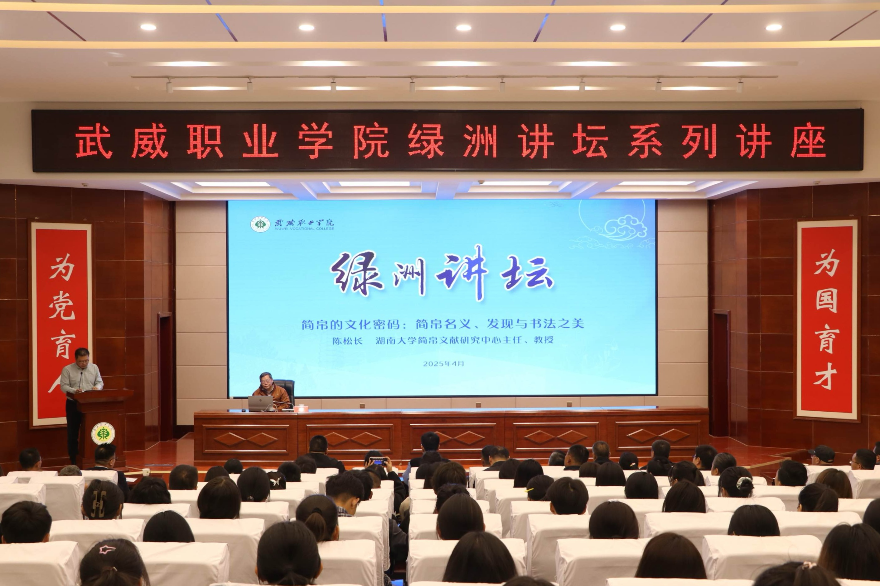 為豐富師生學(xué)術(shù)視野,深入探究歷史文化的獨(dú)特魅力,4月15日,學(xué)校特邀湖南大學(xué)岳麓書院教授、博士生導(dǎo)師、湖南大學(xué)簡(jiǎn)帛文獻(xiàn)研究中心和中國(guó)簡(jiǎn)帛書法藝術(shù)研究中心主任陳松長(zhǎng)教授,在菁英廳作了“簡(jiǎn)帛的文化密碼:簡(jiǎn)帛名義、發(fā)現(xiàn)與書法之美”專題講座。校長(zhǎng)李海軍主持講座,湖南大學(xué)師生代表、武威市涼州文化研究院研究人員、學(xué)校師生代表、媒體記者共210余人參加。