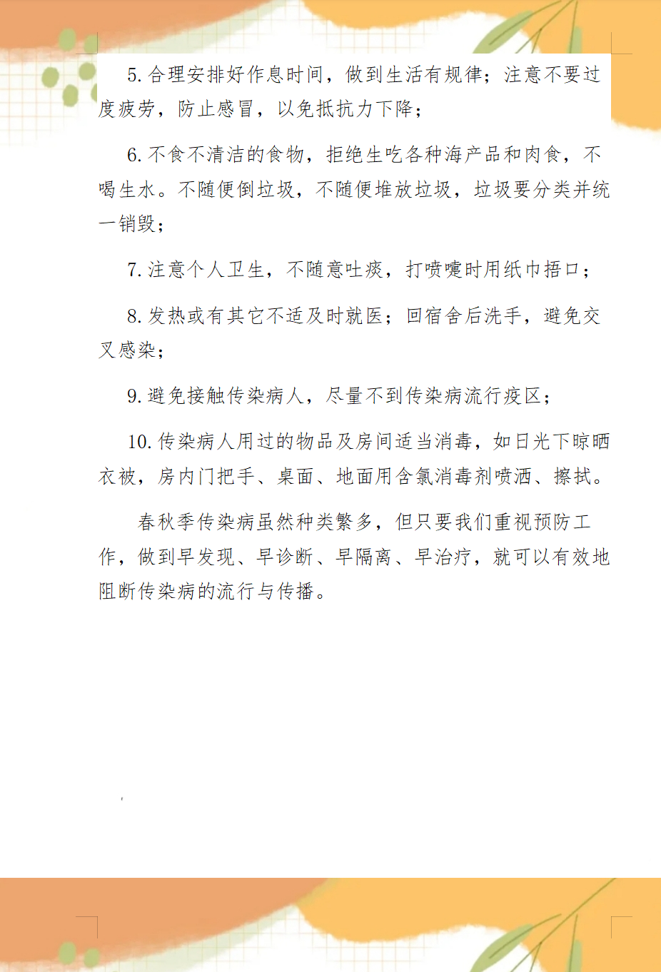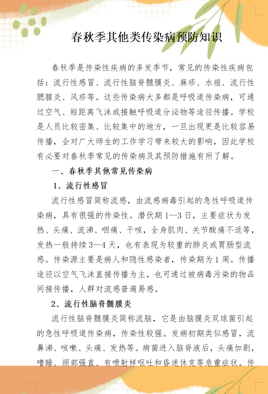 春秋季其他類(lèi)傳染病預(yù)防知識(shí)
