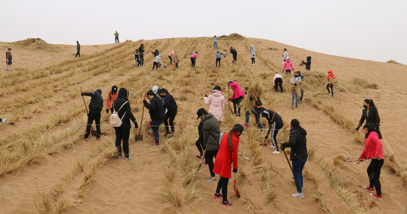3月12日,在第39個“植樹節(jié)”到來之際,按照市上統(tǒng)一安排,學院領導帶隊400余名師生前往古浪縣陸港北部沙漠腹地開展義務壓沙勞動,勞動現場,學院領導和師生們不畏春寒,在技術人員的指導下,揮锨鏟沙、蒲草培沙、勞動現場熱火朝天,整齊的稻草方格逐漸覆蓋了一個個沙丘。通過一天的勞動,圓滿完成了壓沙任務,以實際行動為保護環(huán)境、建設生態(tài)文明美麗武威做出了應有貢獻。
