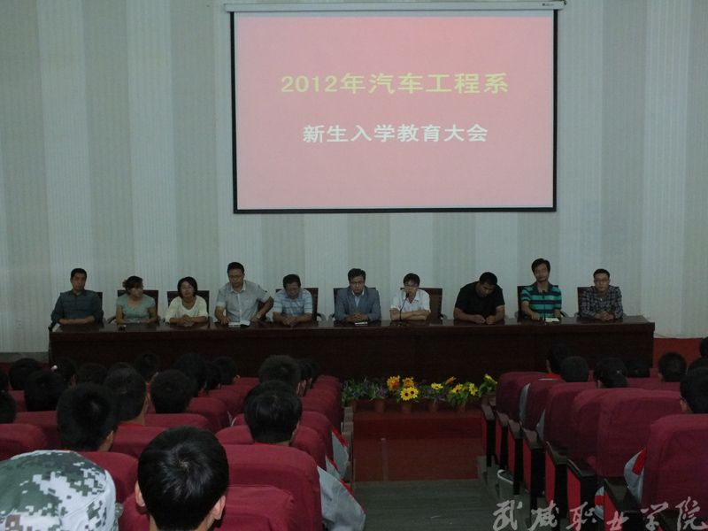 2012年9月3日下午15:00在學院東階梯教室舉行了汽車工程系2012級“華汽教育”新生入學教育大會。大會由汽車工程系學生工作負責人許成林主持,全系專兼職教師、專職班主任、中銳派駐教師楊鈞及194名新入校的大中專學生參加。