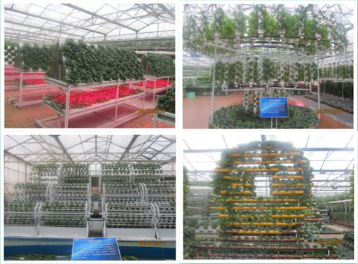蔬菜高科技無土栽培模式展廳展示了各種無土栽培模式,主要有水培、霧培、基質(zhì)培、管道培、立柱培、吊管培、螺旋式立體栽培等。管道設(shè)施密密匝匝、高低參差、錯(cuò)落有致,葉綠、花紅、果黃,使展廳成為集各種工藝造型展示和高科技管道栽培模式于一體的薈萃園。