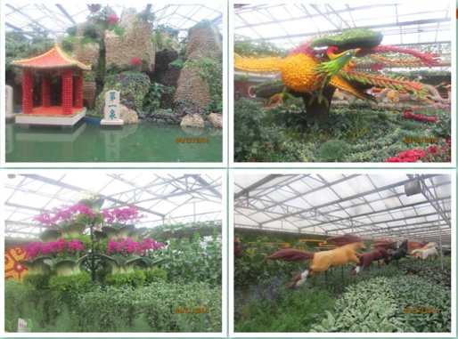 蔬菜園藝廳為優(yōu)秀蔬菜景觀的集中營(yíng),五顏六色的種子、蔬菜、花卉及其他普通材料,在園藝師的手中演繹成氣勢(shì)恢弘、雄偉壯觀、形神兼?zhèn)?、意趣天成的藝術(shù)精品。其中主景點(diǎn)“美麗中國(guó)”將大明湖牌坊、蓬萊閣、五岳獨(dú)尊、孔子雕像、象鼻山、黃果樹瀑布、云岡石窟、嘉峪關(guān)、長(zhǎng)白山瀑 布……30余個(gè)國(guó)內(nèi)知名人文及自然景點(diǎn)穿插其中。整個(gè)景點(diǎn)從遠(yuǎn)處看去,把祖國(guó)的大好河山、現(xiàn)代科技和鮮活蔬菜有機(jī)融為一體,凸顯著“綠色·科技·未來”的主題。