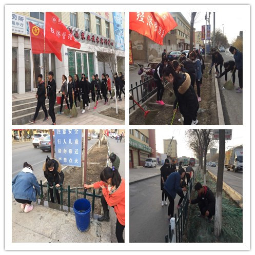 3月3日下午,我系20多名志愿者在學院團委的組織下,共同開展了清潔學院周邊街道環(huán)境衛(wèi)生,志愿者們以“弘揚雷鋒精神,展示青春風采”為主旨,自帶毛巾、掃帚、拖把等清潔用具,將周邊各處宣傳的廣告一一撕掉;細心擦拭上面的灰塵;將空地上、草坪上的垃圾認真清掃,還街道一個干凈、整潔的環(huán)境。
