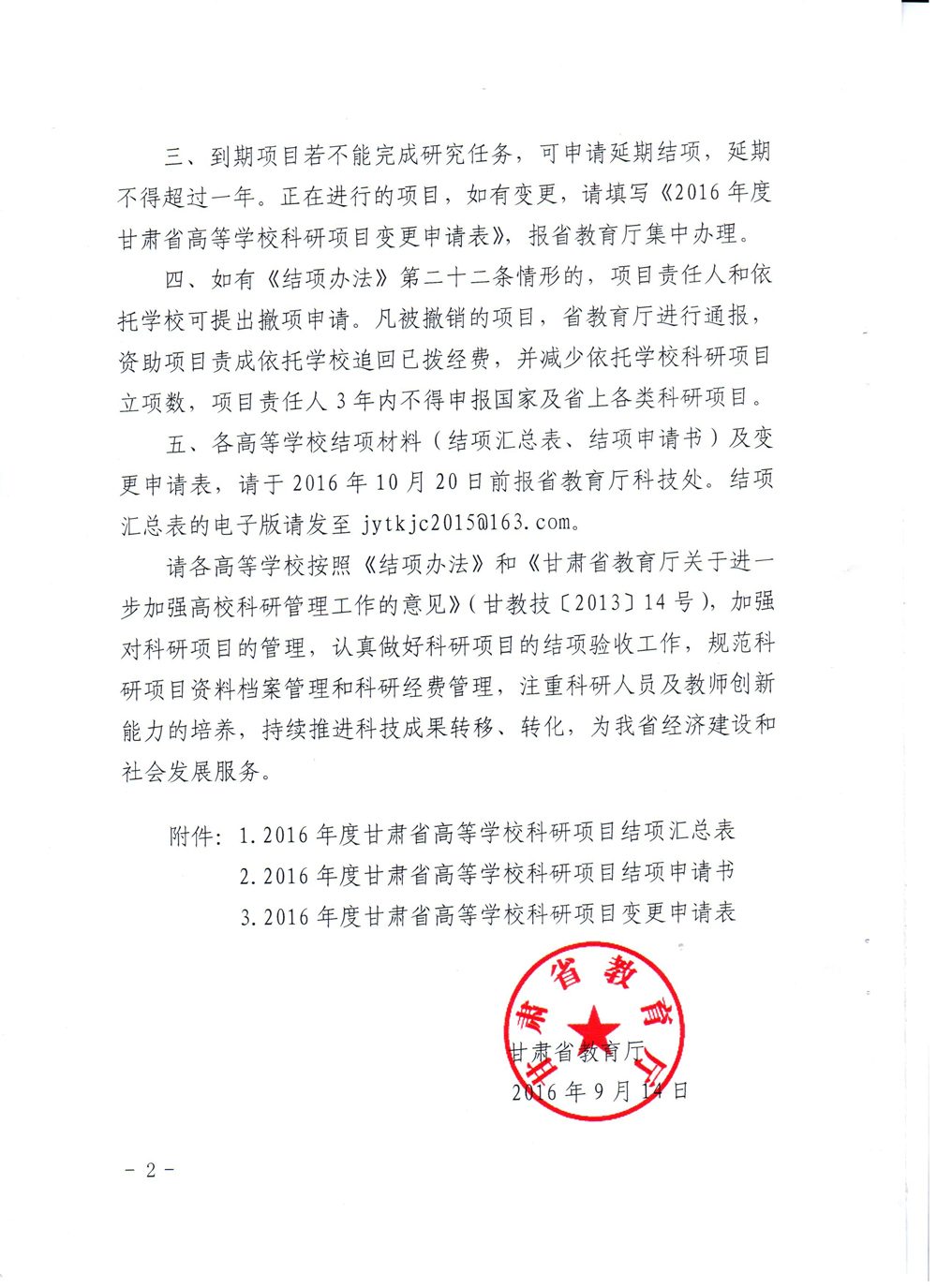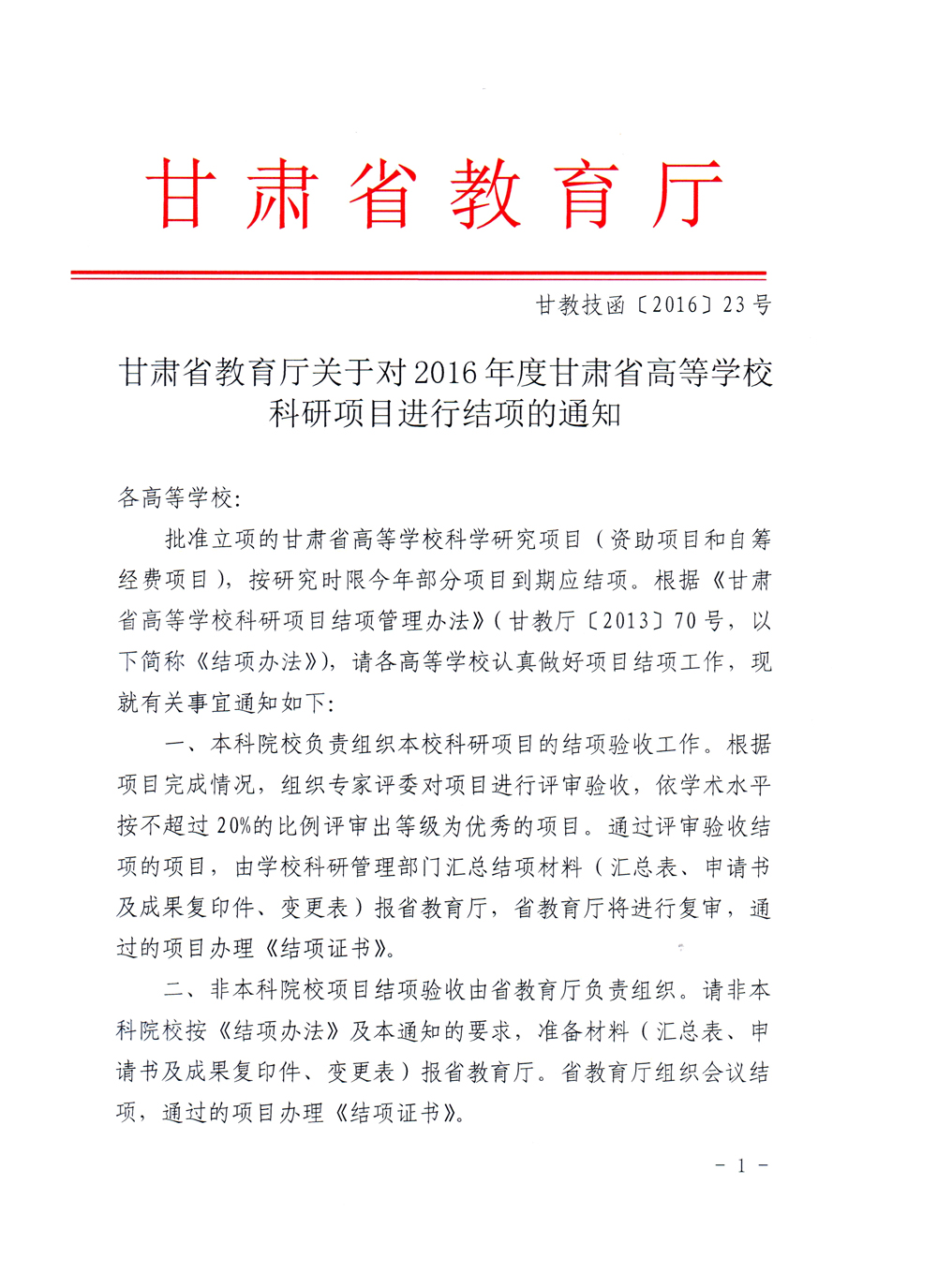 轉(zhuǎn)發(fā)甘肅省教育廳《關(guān)于2016年度甘肅省高等學校科研項目結(jié)項的通知》
