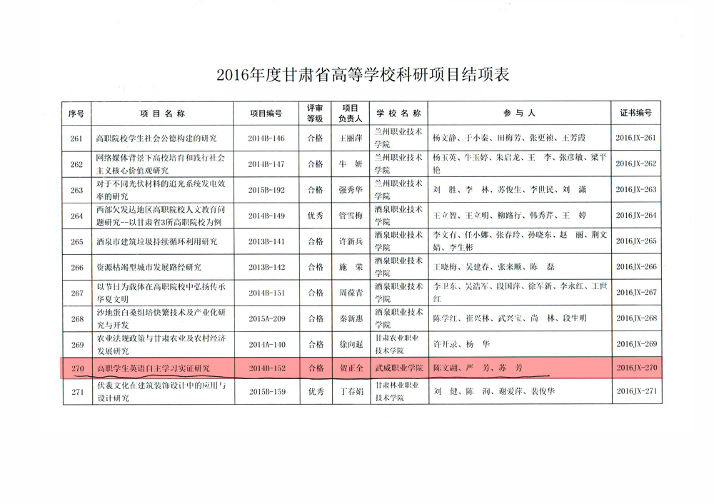 轉(zhuǎn)發(fā)甘肅省教育廳關(guān)于2016年度甘肅省高等學(xué)??蒲许?xiàng)目結(jié)項(xiàng)情況的通知