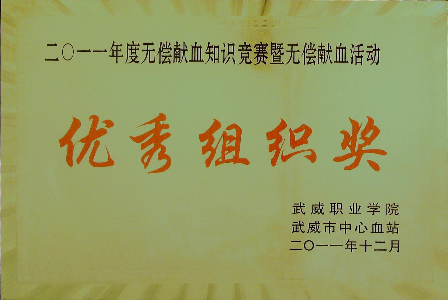 2011年無償獻血知識競賽暨無償獻血優(yōu)秀組織獎