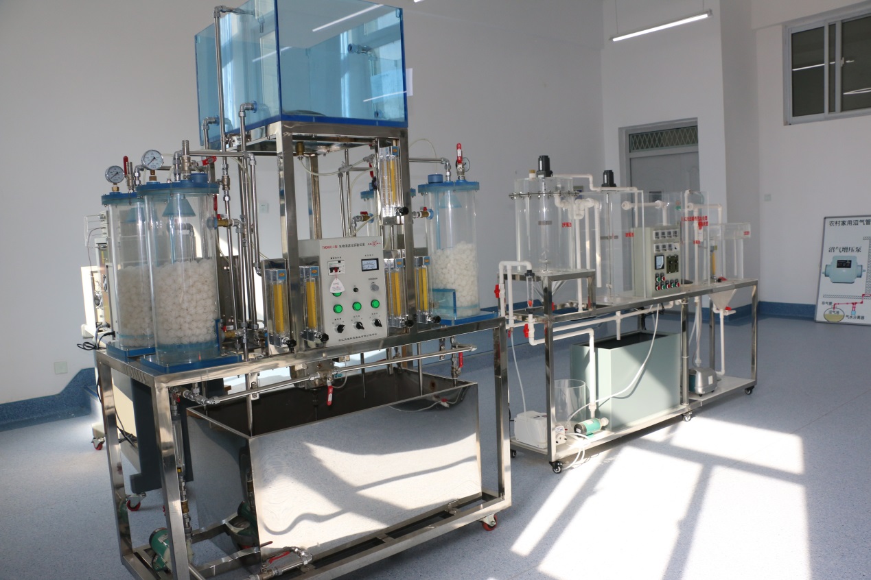 實(shí)訓(xùn)功能:本實(shí)訓(xùn)室擁有生物滴濾池實(shí)驗(yàn)裝置、完全混合式活性污泥法實(shí)驗(yàn)裝置、沼氣發(fā)酵罐(四樓樓頂)、A20法城市污水處理模擬設(shè)備共9套。主要服務(wù)課程為《農(nóng)業(yè)微生物》、《沼氣生產(chǎn)利用技術(shù)》、《生物質(zhì)能利用技術(shù)》、《農(nóng)業(yè)環(huán)境監(jiān)測技術(shù)》。