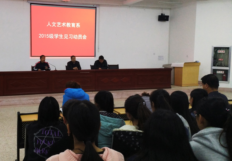 為進一步提高學(xué)生實踐能力,掌握見習(xí)工作流程和相關(guān)要求。在4月8號下午,人文藝術(shù)教育系在勵勤樓階梯教室舉行了“2015級學(xué)生見習(xí)安排工作會議”。系書記胡靜峰、教學(xué)秘書曹禎、輔導(dǎo)員李欣、各班班主任與15級全體學(xué)生參加了會議。