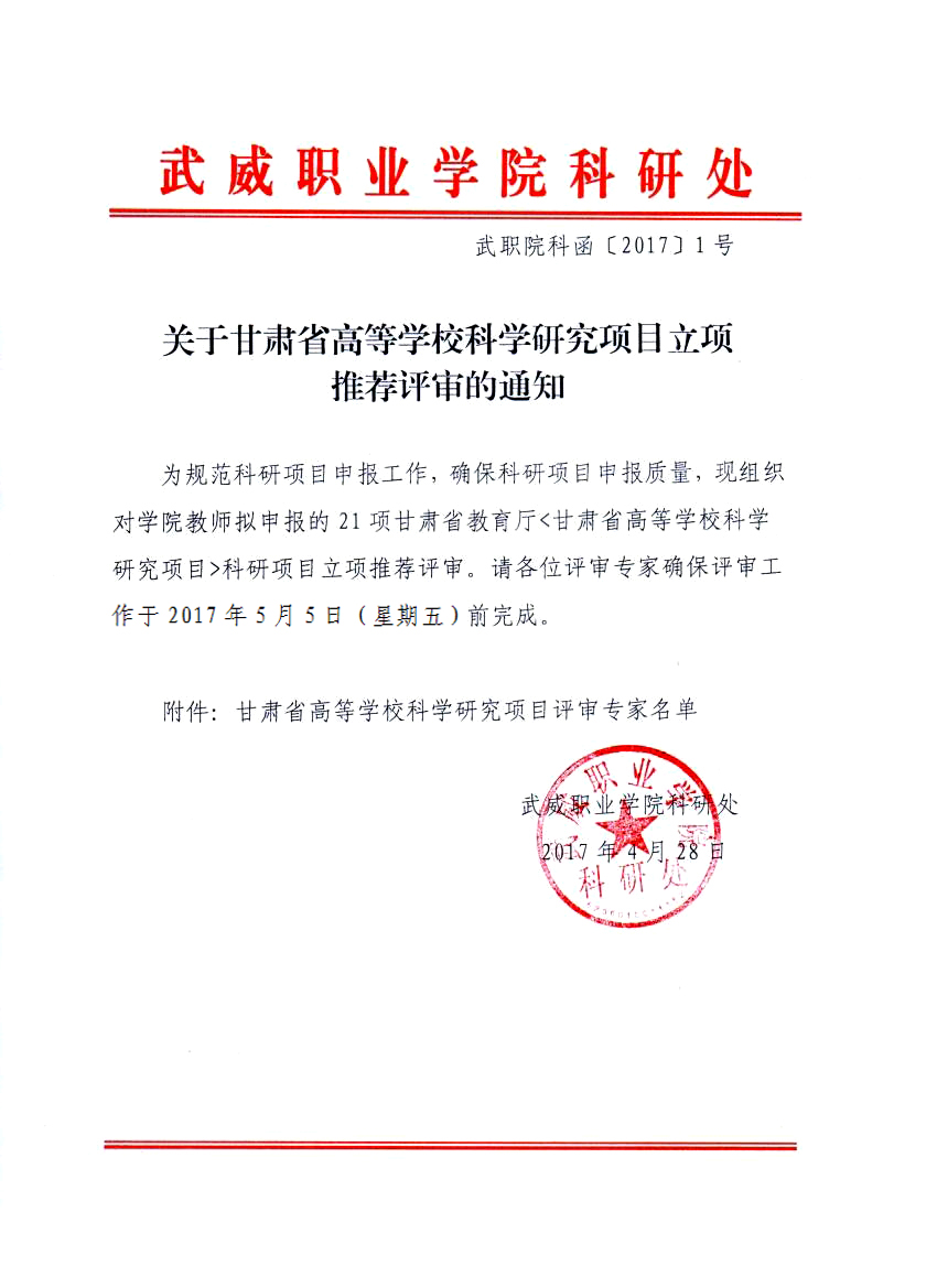 關(guān)于甘肅省高等學(xué)??茖W(xué)研究項(xiàng)目立項(xiàng)推薦評審的通知