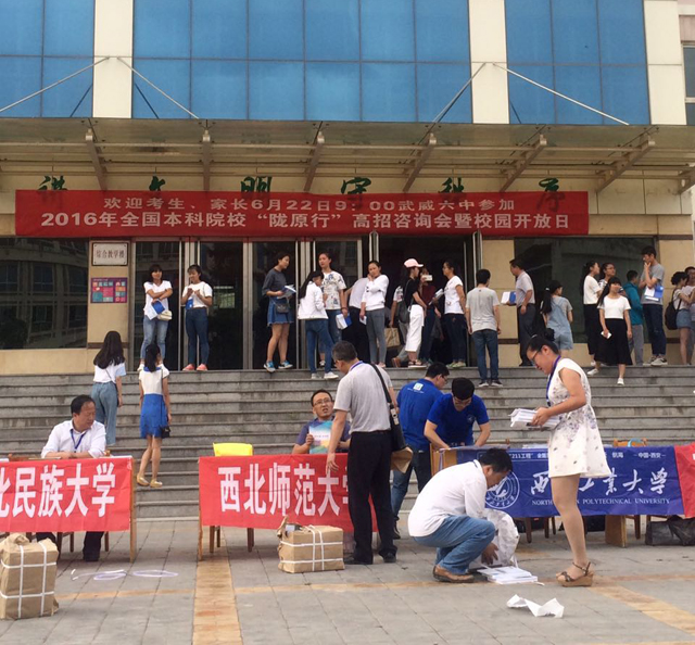 同一天,招生就業(yè)處還選派老師參加了在武威六中舉行的由《未來導(dǎo)報(bào)》主辦的“2016年全國(guó)本科院?!]原行’高招咨詢會(huì)”,就考生和家長(zhǎng)關(guān)心的相關(guān)熱點(diǎn)問題進(jìn)行了現(xiàn)場(chǎng)答疑解惑,考生及家長(zhǎng)表示對(duì)他們掌握各院校熱門專業(yè)和報(bào)考要求有很大幫助。
