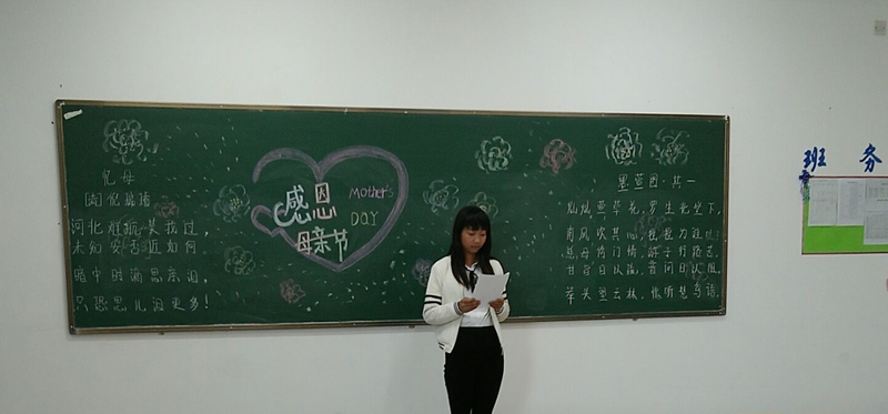 5月14日我系組織各班級(jí)舉辦“感恩5月”為主題的演講活動(dòng)。班會(huì)上各班代表結(jié)合自己經(jīng)歷講述了一個(gè)個(gè)扣人心弦的故事,讓每位同學(xué)再一次體會(huì)親情的無(wú)私和偉大,讓同學(xué)們學(xué)會(huì)感恩,學(xué)會(huì)用心關(guān)愛(ài),讓愛(ài)心源源不斷地傳遞。