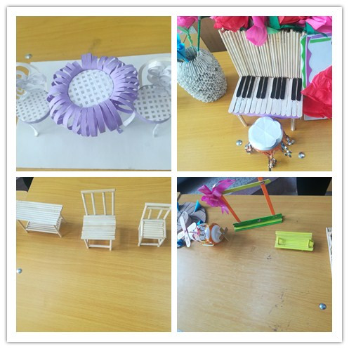 活動中,指導老師要求學生們充分利用身邊廢棄的飲料瓶、廢紙、塑料、布料、木料等廢舊材料,通過自己的創(chuàng)意,制作出體現(xiàn)科技、環(huán)保的工藝作品。活動布置后,同學們積極參與,充分利用網(wǎng)絡(luò)搜集相關(guān)資料及設(shè)計圖案,憑借豐富的想象力和創(chuàng)造力,將生活中的廢品制作成了各種各樣的手工藝術(shù)品。