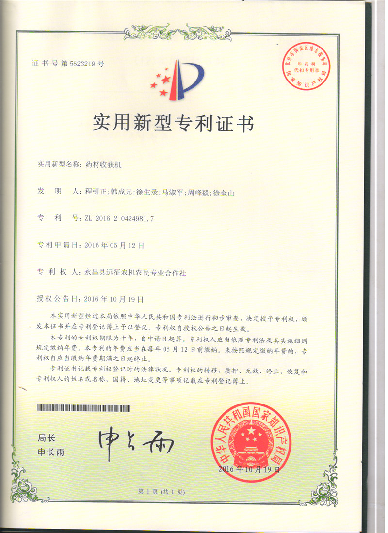 科研成果---實(shí)用新型專利:藥材收貨機(jī)