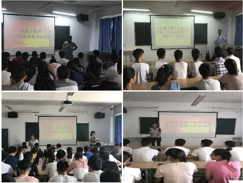 6月8日至6月16日,甘肅寰宇數(shù)字遙感信息有限公司、甘肅新一工程咨詢有限公司、國誠集團、蘭州凱瑞德工程有限公司、武威盛大集團等實習接收單位,派專人來校,舉辦企業(yè)宣講會,詳細地介紹了用人單位的管理制度、日常生活、工作崗位、薪酬待遇等,并與系上洽談了學生頂崗實習合作辦法、責任義務、安全保障、就業(yè)等涉及學生諸方面的合作細節(jié)。