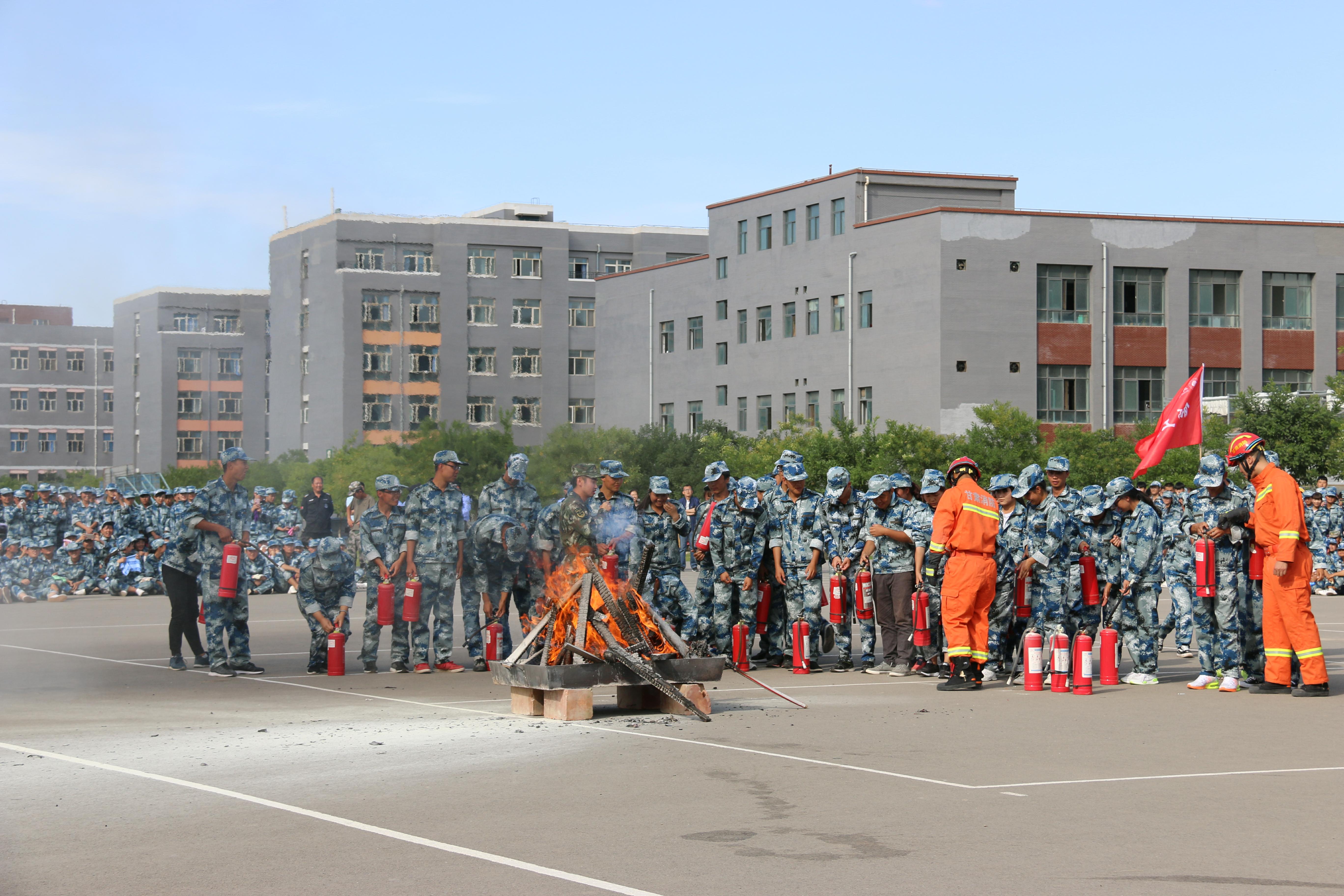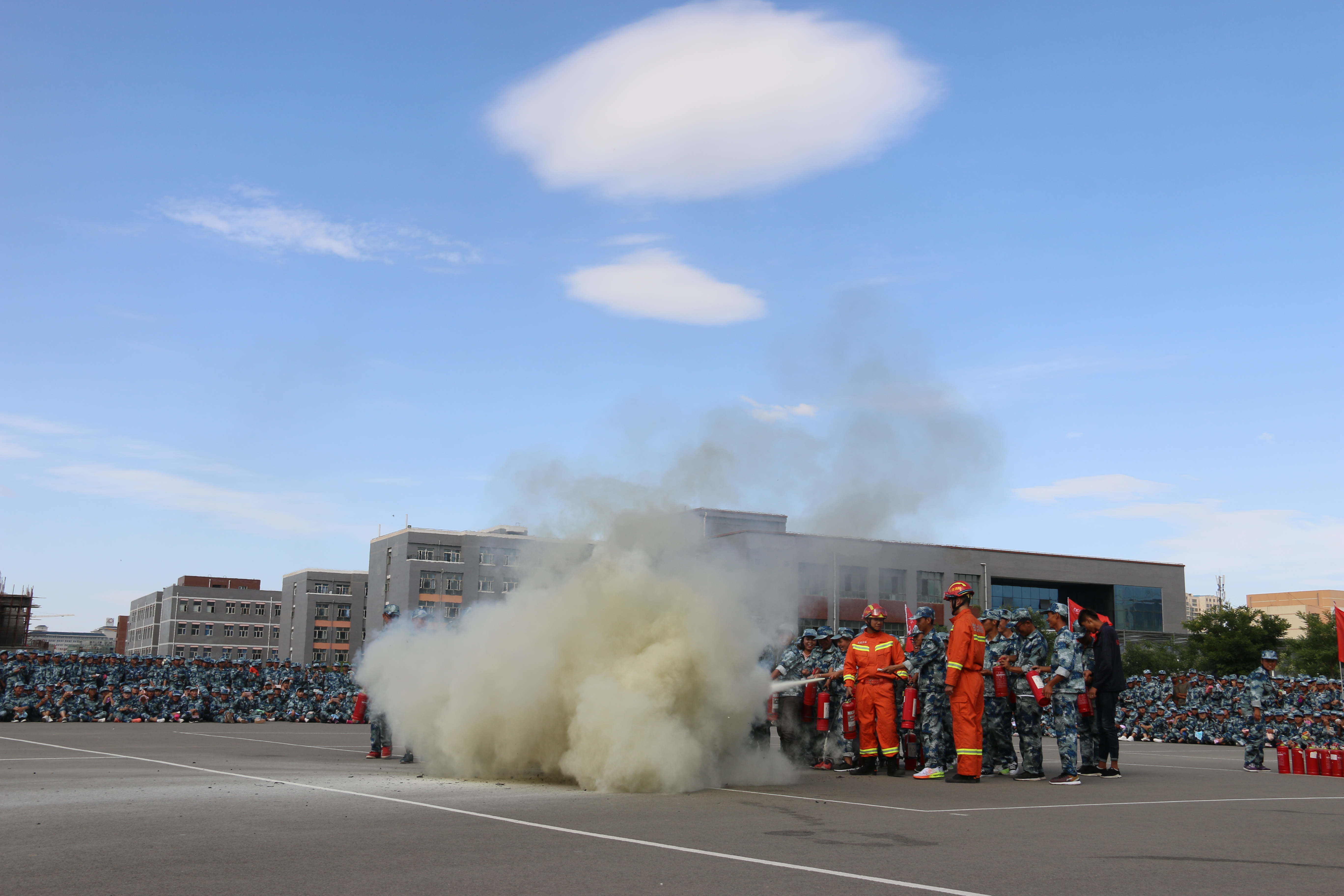 隨后,所有參演學(xué)生整隊(duì)到操場參加了滅火演練。在消防官兵的講解和和示范下,同學(xué)們體驗(yàn)了處置著火液化氣瓶、干粉滅火器滅火,通過模型煙室等操作。