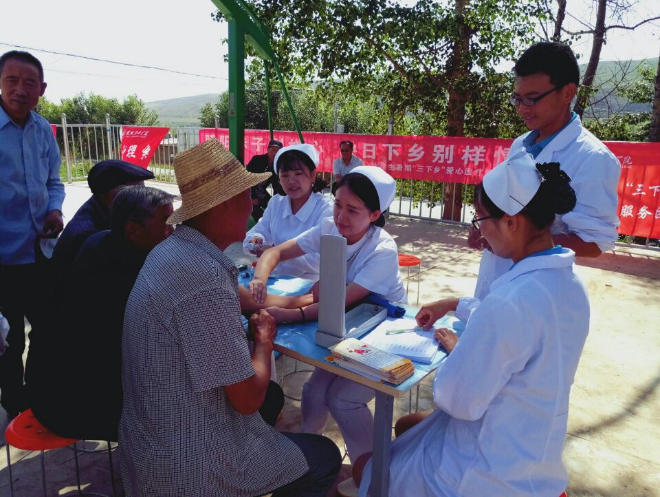 2017年暑假期間,護(hù)理系積極響應(yīng)院團(tuán)委暑期“三下鄉(xiāng)”社會實踐活動的號召,組織11名學(xué)生成立了“愛心醫(yī)療服務(wù)團(tuán)”,赴武威市新井村、張義鎮(zhèn)、武威第十一中學(xué)、小洪溝河灣村、沙金臺村等多地開展了為期6天的社會實踐活動。