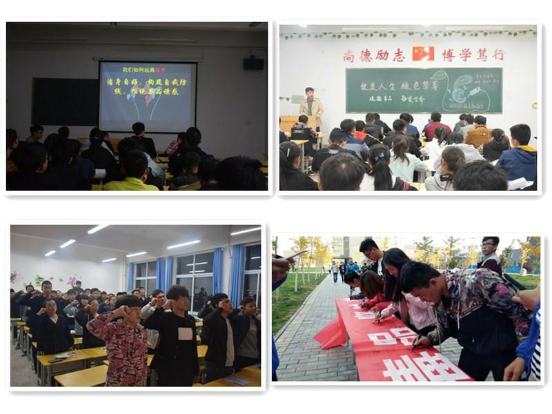 學(xué)院以引導(dǎo)學(xué)生樹立健康人生理念、創(chuàng)造綠色無毒生活為宗旨,認(rèn)真開展了毒品預(yù)防教育“五個一”活動。10月16日晚,各班以問答、演講、辯論、PPT等多種形式開展了以“健康人生,綠色無毒”為主題的班會并莊嚴(yán)宣誓——珍愛生命,遠(yuǎn)離毒品,堅決禁毒;10月17日晚,學(xué)院組織同學(xué)們觀看了禁毒影視劇,并設(shè)置知識競賽環(huán)節(jié),同學(xué)們參加踴躍;10月18日下午,學(xué)院在明德樓前舉行禁毒宣傳簽名活動,學(xué)院院長董海鷹簽名并與同學(xué)們親切交談。活動期間,學(xué)院還開展以“健康人生、綠色無毒”為主題的禁毒征文比賽,并對優(yōu)秀作品在學(xué)院官方QQ、微信、宣傳欄等平臺進(jìn)行展示和粘貼。此次禁毒活動宣傳形式廣泛,同學(xué)們參與度高,宣傳效果明顯。