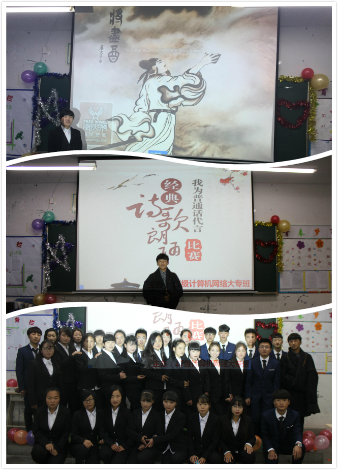 為了弘揚中華民族傳統(tǒng)文化,倡導學生立德修身,培育愛國情操,2017年11月20日,17級計算機網(wǎng)絡大專班舉辦了主題為“傳承中華文化,共筑青春夢想”經(jīng)典詩歌誦讀比賽。