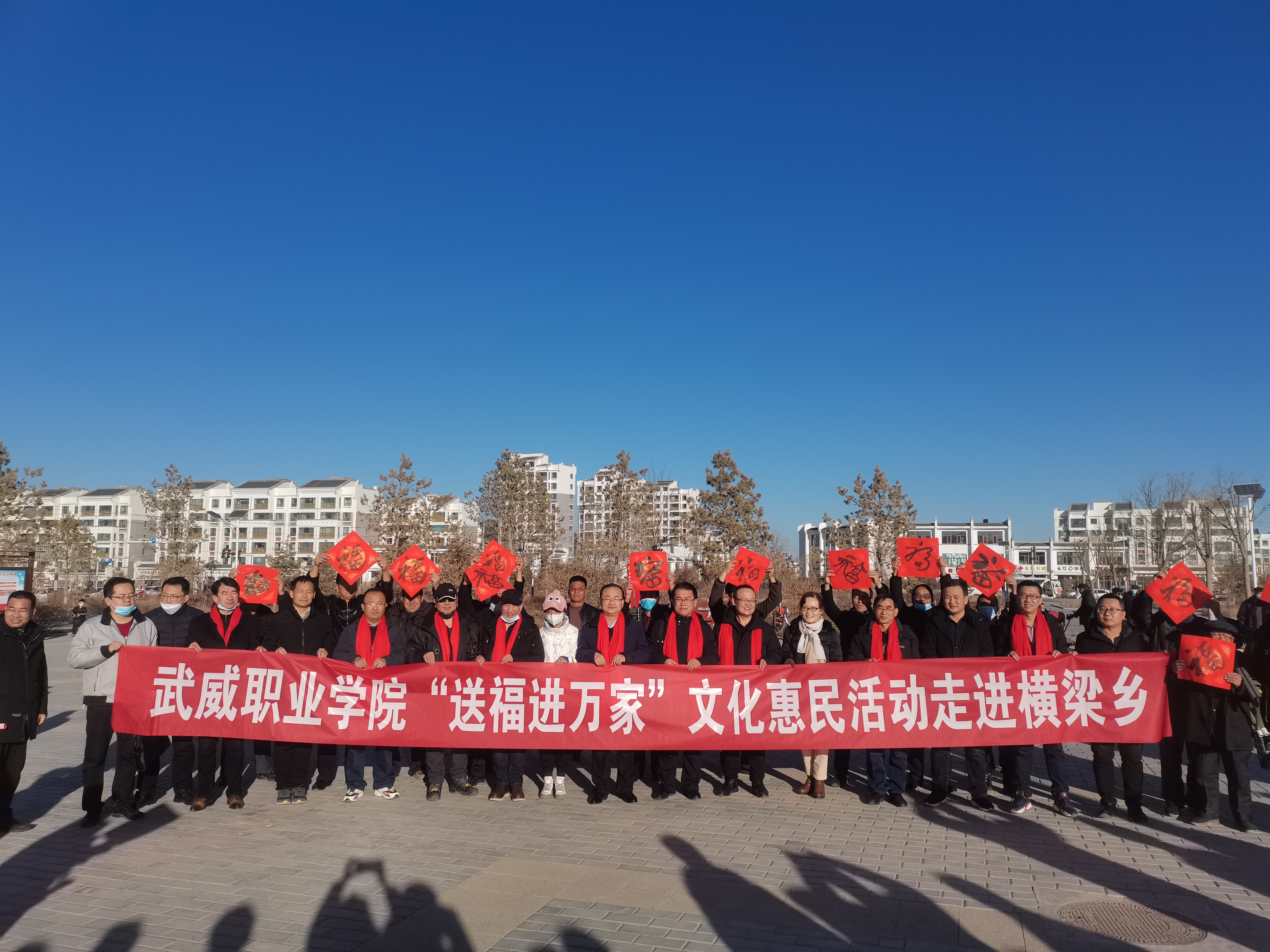 臘八已過,年味漸濃。1月14日,學(xué)院“送福進(jìn)萬家”文化惠民活動(dòng)走進(jìn)古浪縣橫梁鄉(xiāng),組織40名書畫教授、書法愛好者和志愿者為群眾送去5000余副春聯(lián)、福字。