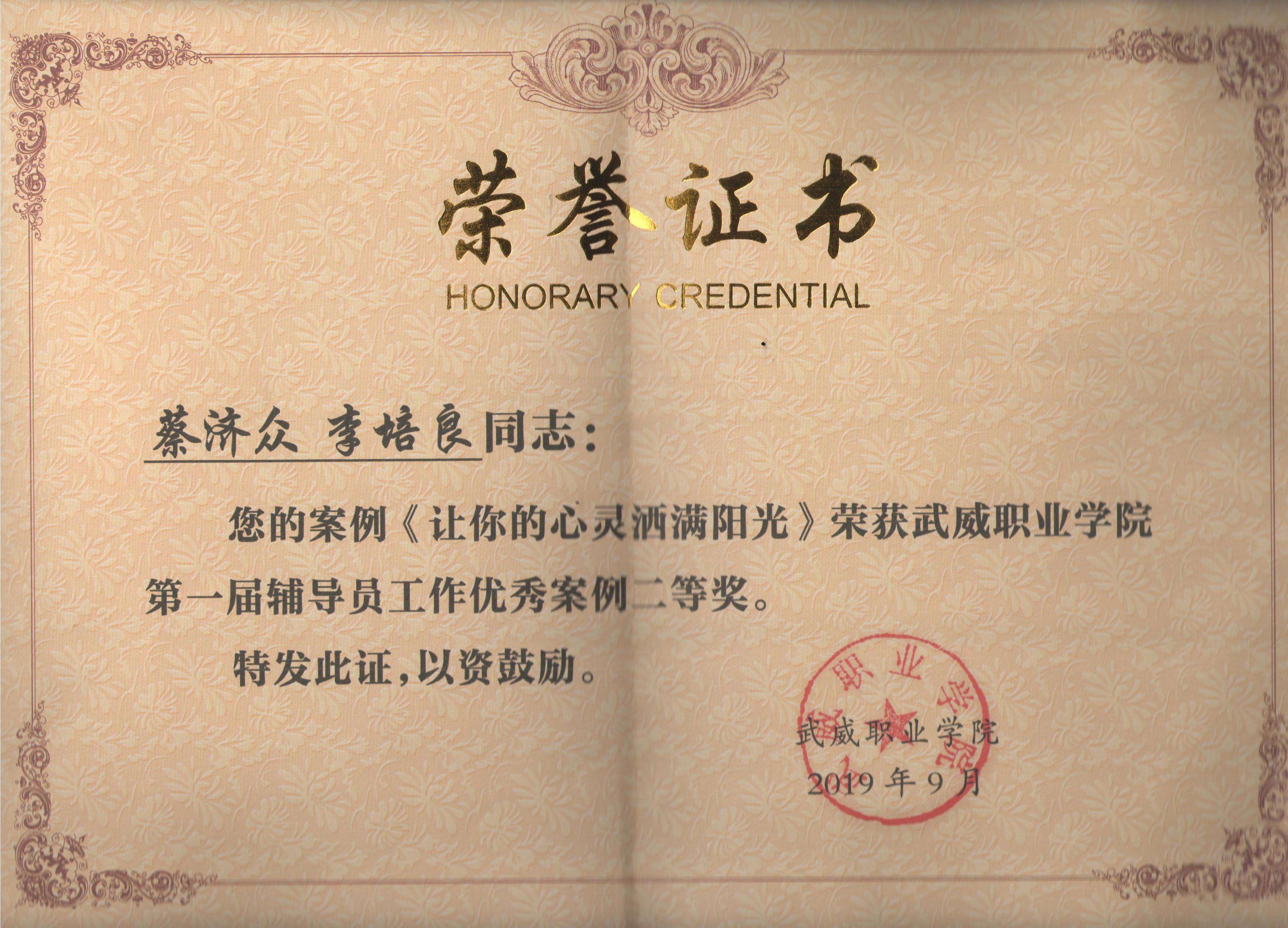 武威職業(yè)學(xué)院第一屆輔導(dǎo)員工作優(yōu)秀案例《讓你的心靈灑滿(mǎn)陽(yáng)光》