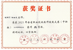 項(xiàng)目組成員徐生龍2021年4月獲甘肅省技能大賽二等獎
