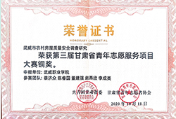 6.項(xiàng)目組成員蔡濟(jì)眾、陳睿國2020年11月主持項(xiàng)目《武威市農(nóng)村房屋質(zhì)量安全調(diào)查研究》榮獲第三屆甘肅省青年志愿者服務(wù)項(xiàng)目大賽銅獎