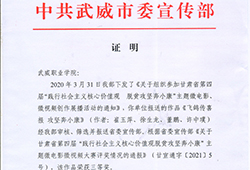 項(xiàng)目組成員徐生龍撰寫的論文《精準(zhǔn)扶貧背景下職業(yè)教育助力脫貧攻堅(jiān)的實(shí)踐思考》被評為武威市第一屆學(xué)術(shù)年會論文一等獎