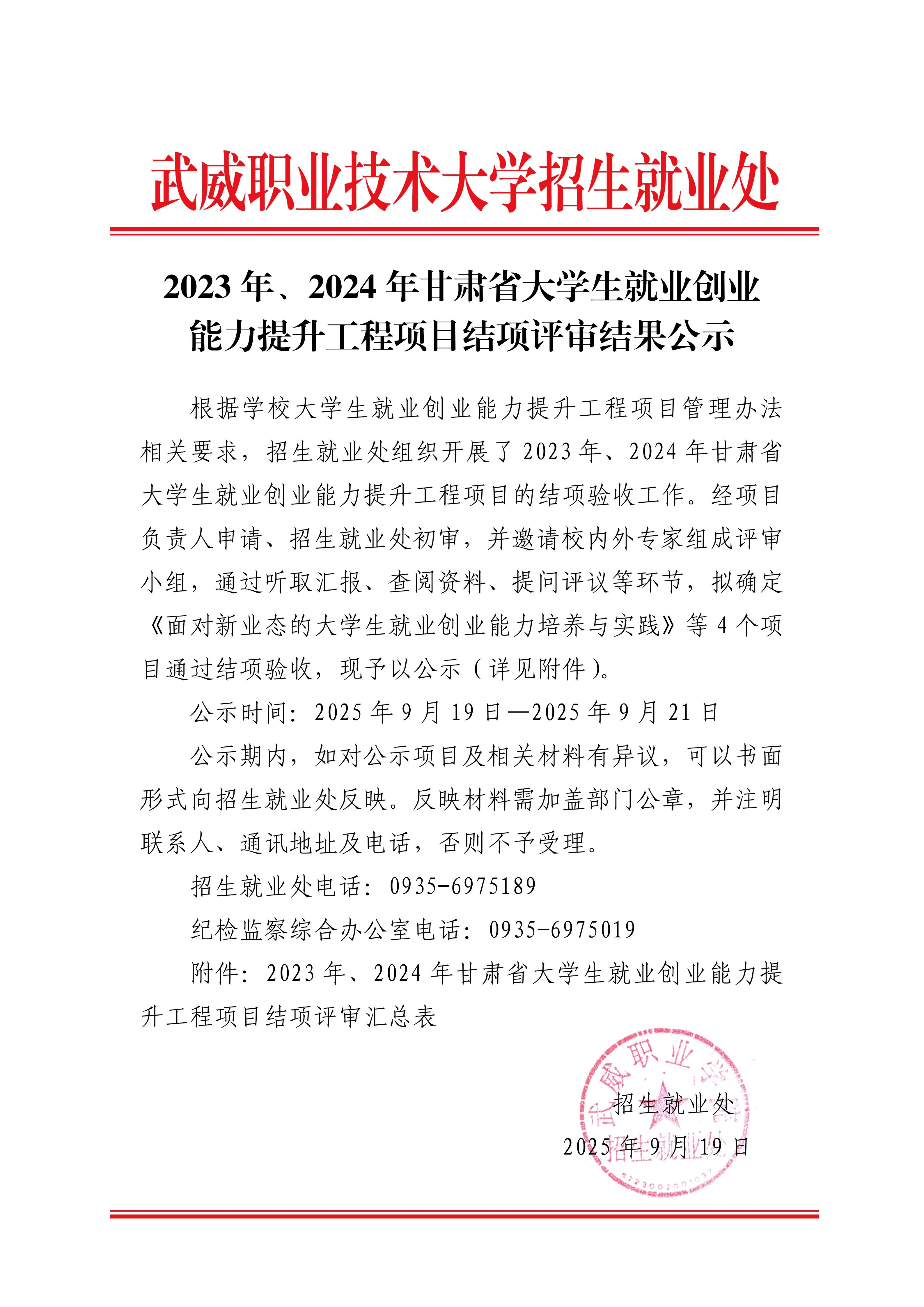 2023年、2024年甘肅省大學生就業(yè)創(chuàng)業(yè)能力提升工程項目結(jié)項評審結(jié)果公示