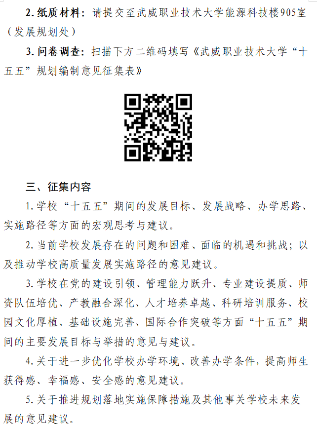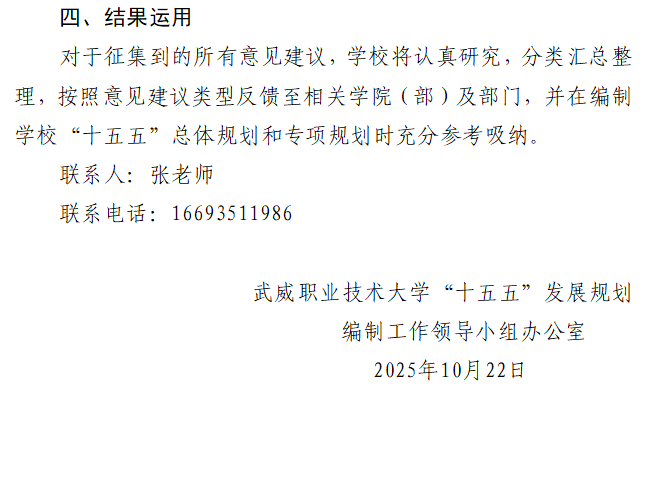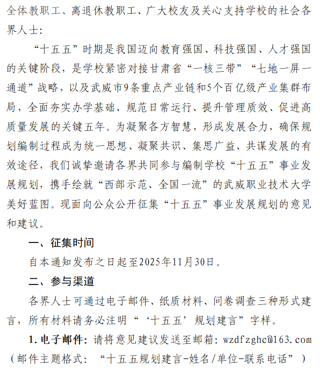 武威職業(yè)技術(shù)大學(xué)關(guān)于公開征集“十五五”規(guī)劃編制意見建議的通知